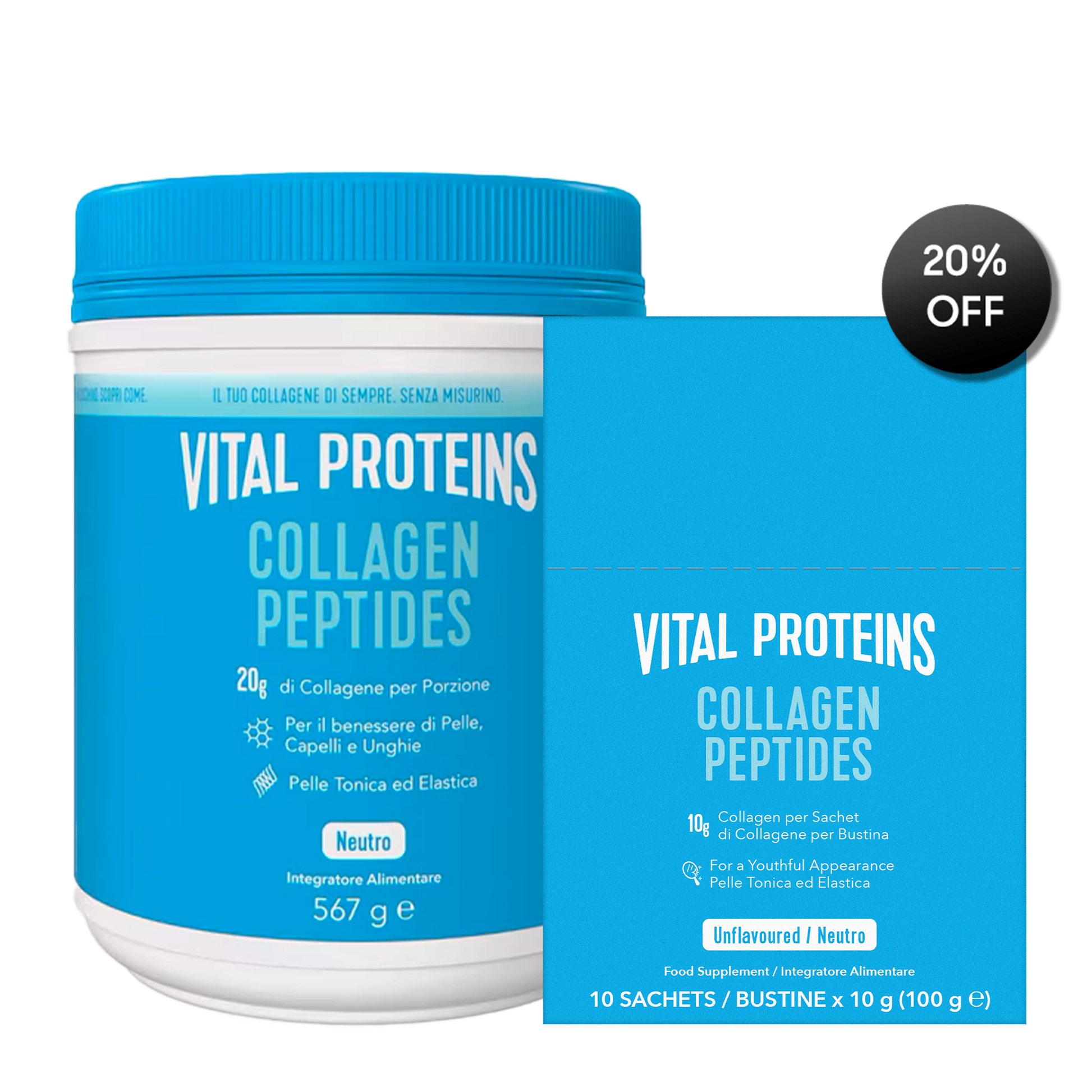 Your collagen routine simplified. A full-size tub for home and sachets for your bag, gym or office. Consistent collagen wherever you go.