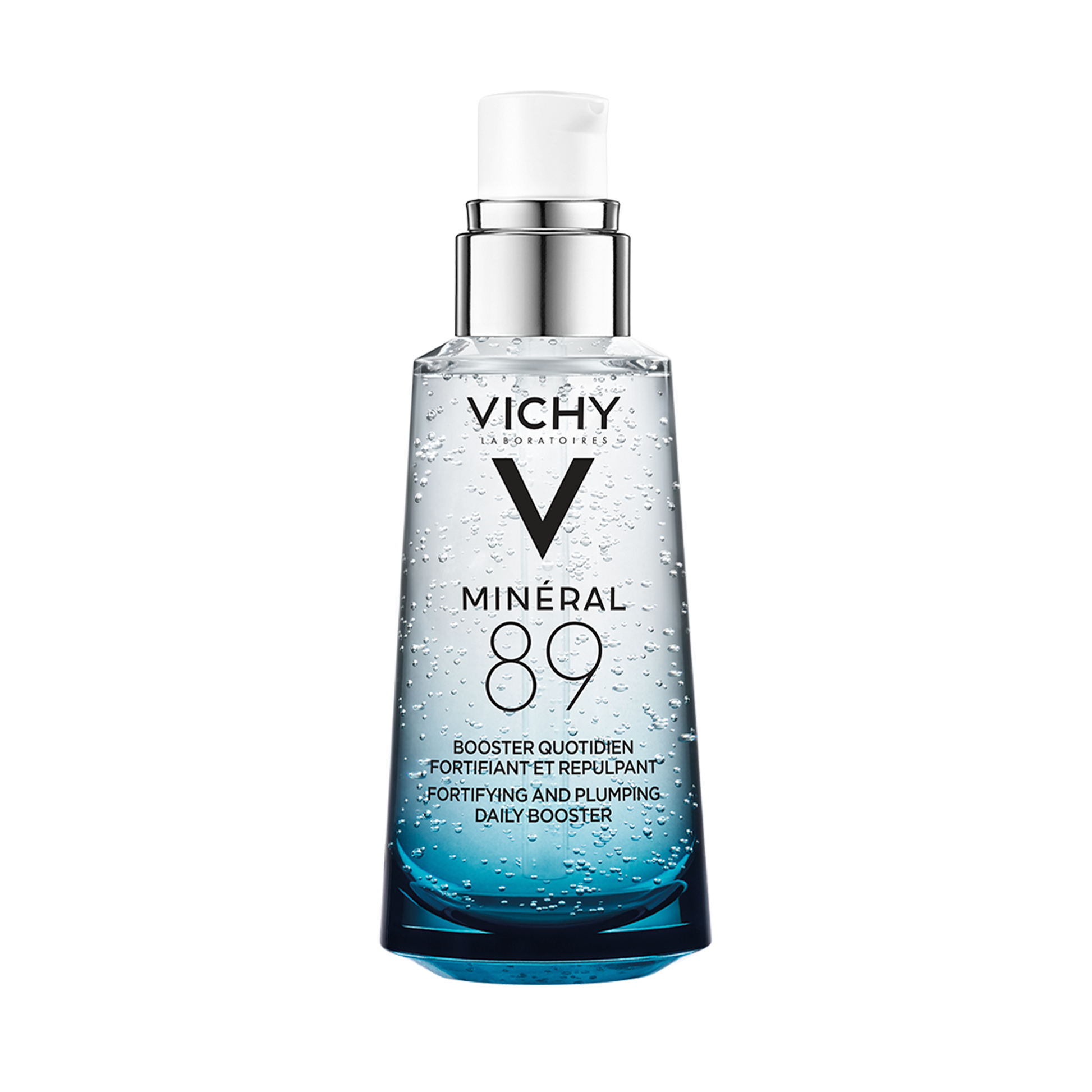 Mineral 89 Skin Booster is enriched with Hyaluronic acid, 15 essential minerals, and our highest concentration of Vichy Volcanic Mineralizing Water, instantly plumping your skin with moisture and hydrating for up to 24 hours.